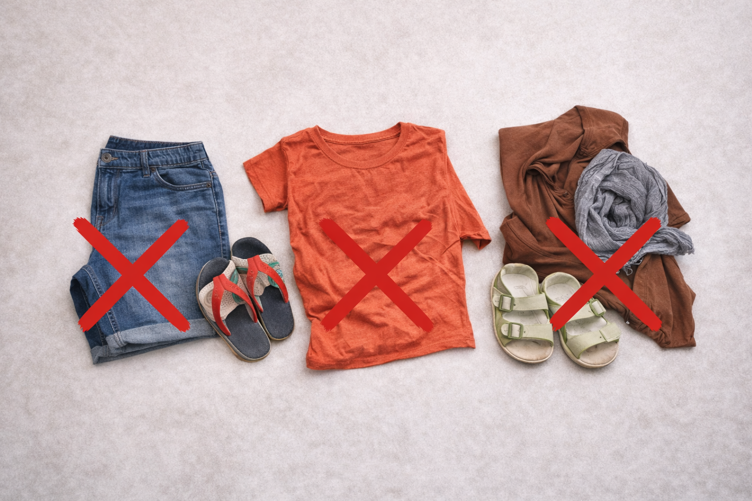 Exemple des dêtements à éviter pour le karting : tong, short, vêtements trop amples.